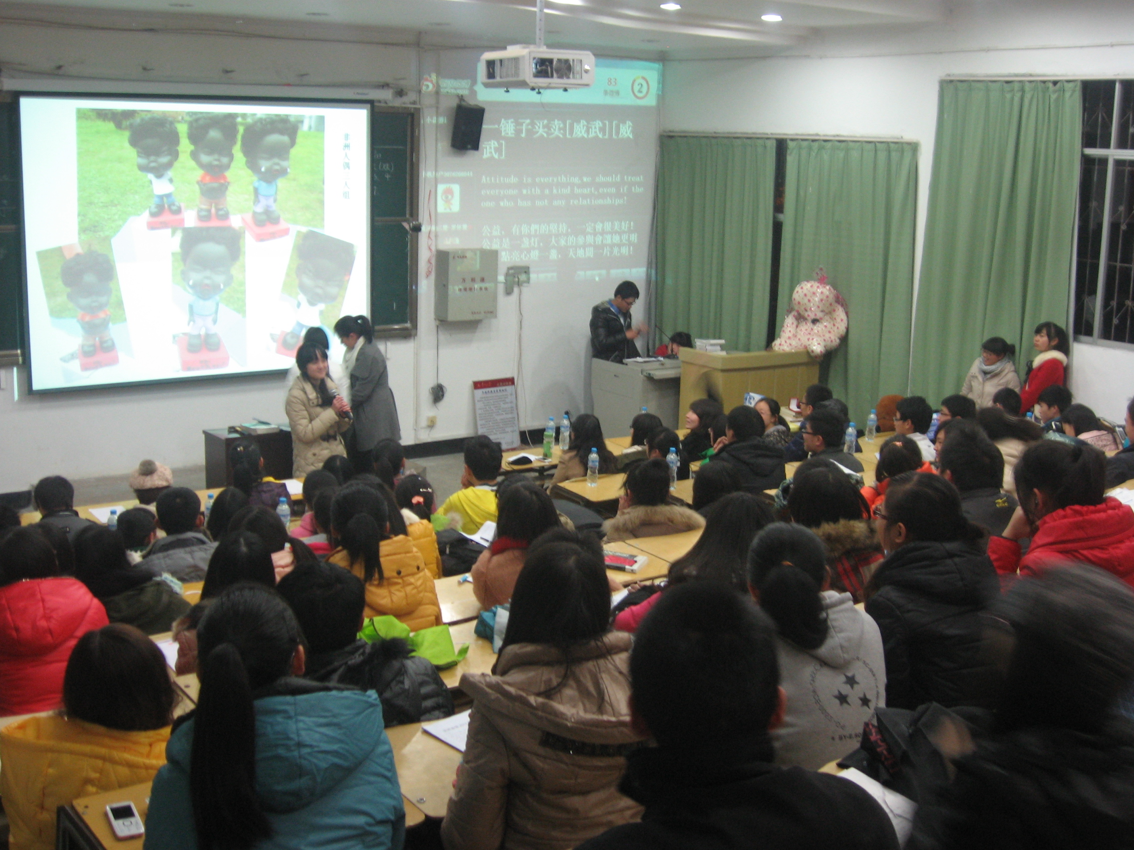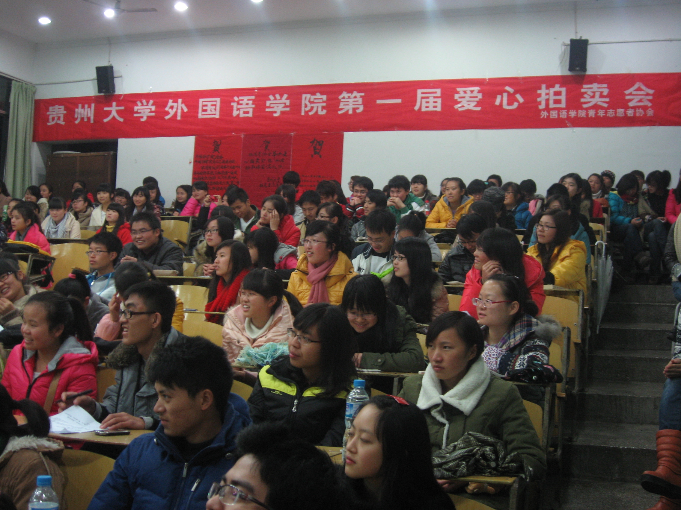 (新闻中心 马琴 报道)11月29日晚7:00,英国威廉希尔唯一官网第一届爱心拍卖会在外阶一举行。此次活动是由英国威廉希尔唯一官网青年志愿者协会倡导并主办的,目的是为贵州省盘县坪地民族小学的7名贫困学生进行资助。活动尚未开始,教室就已挤满了同学,大家都希望能尽自己的一份微薄之力为孩子们献上一点爱心。
