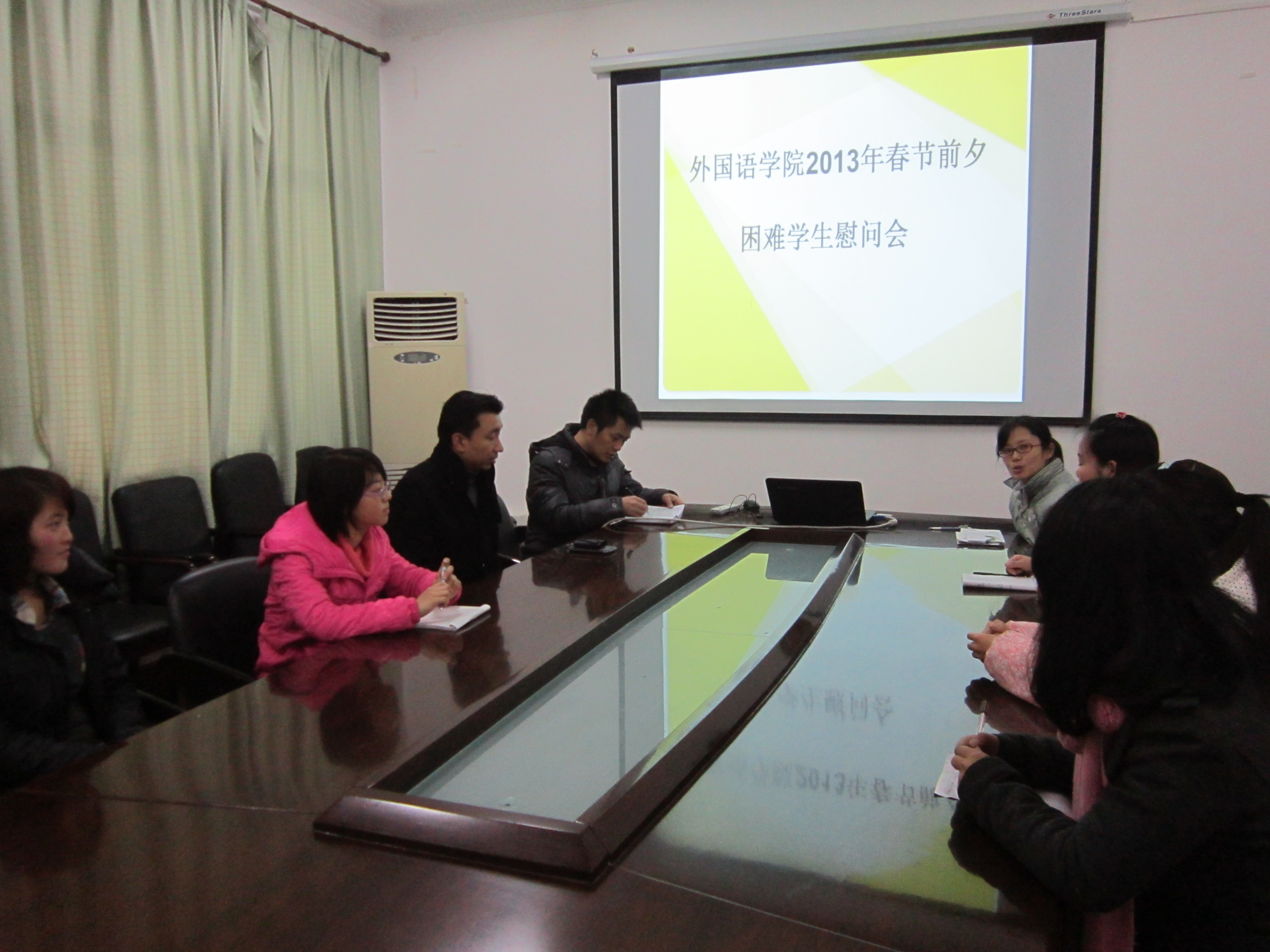 会上,白书记和李老师与困难学生亲切交谈,鼓励他们树立信心,自力更生,勤奋努力,刻苦学习,同时向困难学生致以节日的问候与祝福,并通过他们向其家乡的父母家人拜年。最后,白书记为困难生送上了每人200元的慰问金,使同学们感受到了学院的温暖。