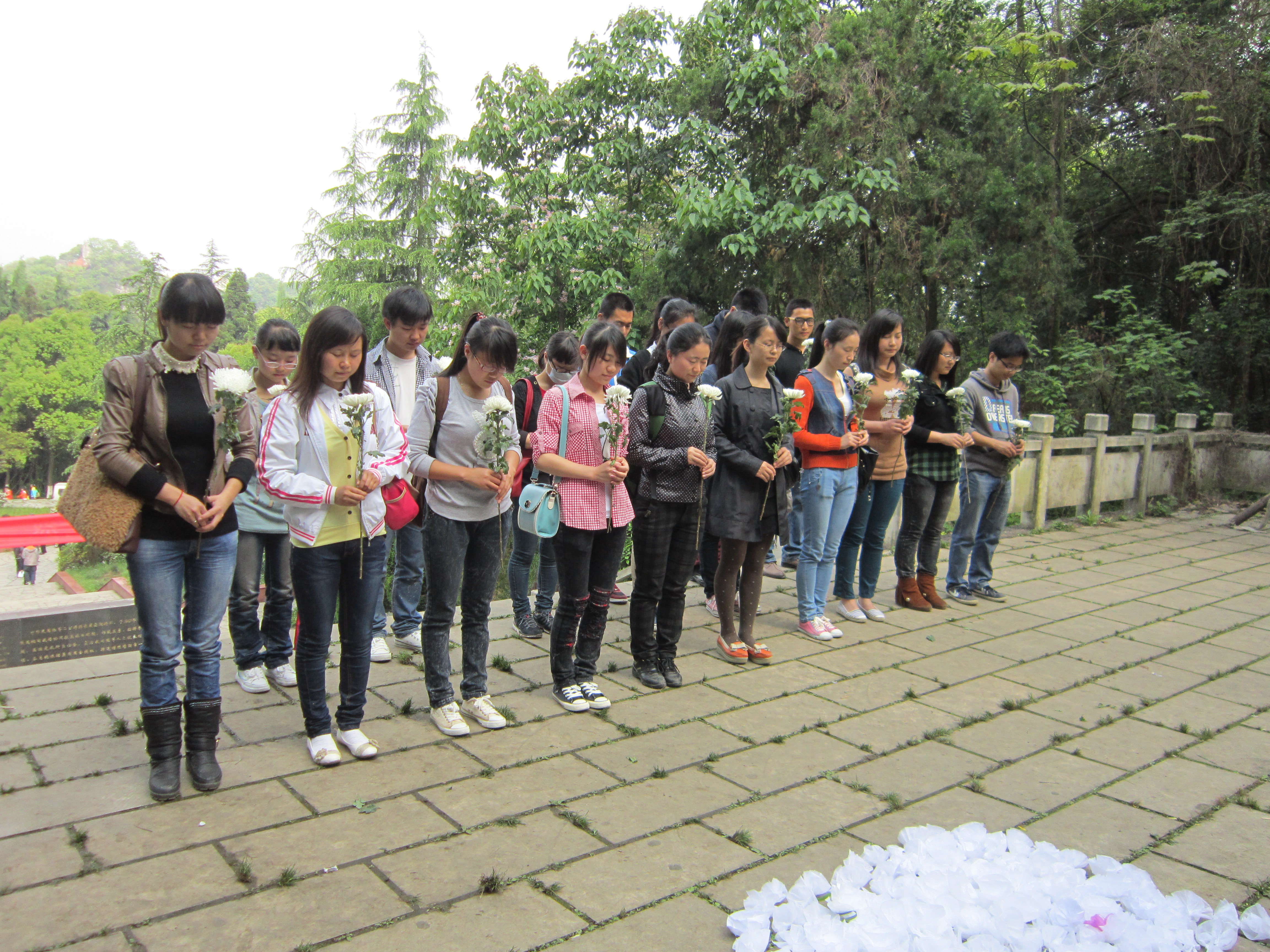 4月4日上午10时,手拿洁白菊花的英国威廉希尔唯一官网本科生和研究生五个学生党支部的党员代表21人组成的队伍到达将军墓前。扫墓祭奠活动开始:首先大家肃立在纪念碑前低头默哀,寄托对将军的哀思三分钟;随后,每人将一朵菊花献给戴安楠将军;最后,大家一起瞻仰了将军陵墓,合影留念,扫墓祭奠活动到此结束。