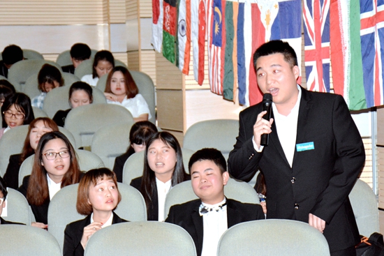 所谓天下兴亡,匹夫有责,我辈读书人更加应该多多关注国家大事。这次的模拟联合国大会,便给了同学们一个就全球问题发表自己意见的大好平台。在此次大会中,由学生组成的各国代表们积极发言,他们的言论多次引起现场的掌声雷动。令人印象最深刻的不是那一声声对美国代表的“质问”,也不是各位代表们对身后“国家主权”的激烈维护,而是模拟联合国大会主席杨运强调的那一句“Please use ‘our country’ instead of ‘I’.”。这样认真谨慎的态度,也贯穿了这次大会的始终。在新闻发布会环节,各国代表们就全球反恐问题时有激烈的讨论与争辩,但场内始终能听见主席团的“Time up”,保持整个会议的公平性。新闻发布会结束后,主席团对这场会议各国代表进行了简短的总结。评委陈静与外教Mark分别上台发表了简短的评价。陈静表示,在当今世界,语言成为教育的一大重点,是我们与世界进行交流的不可或缺的手段,作为一名语言的学习者,她为参与会议的众位感到骄傲。而Mark则说他对能够参加此次活动感到非常荣幸,他认为同学们无论在英语的发音、表达上,还是在对国际性问题的认识上都表现得很棒。