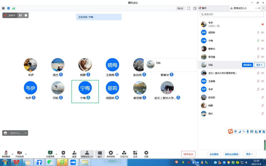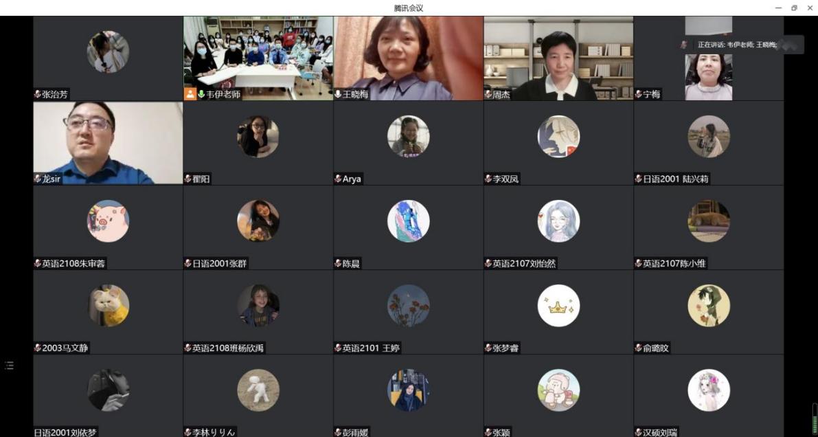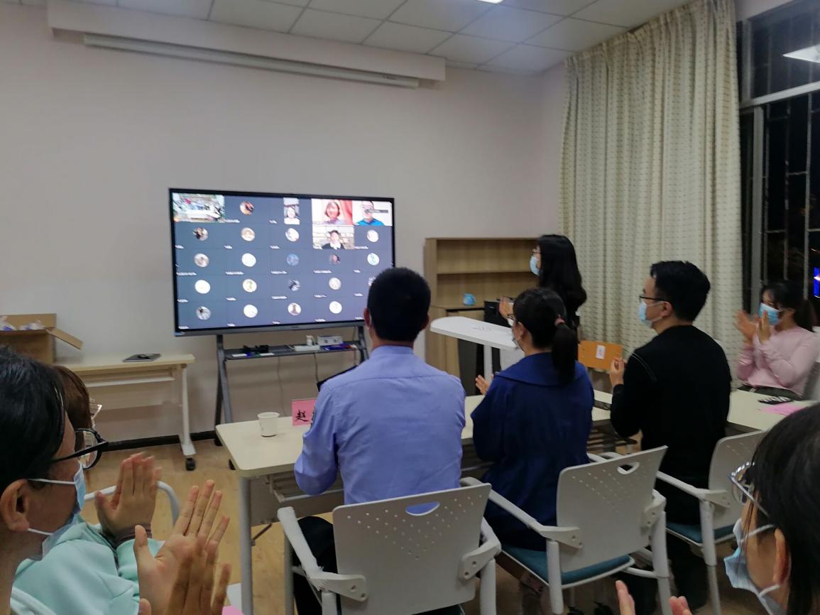 上图:龙汶书记、周杰院长、宁梅副院长、王晓梅副院长在线慰问师生