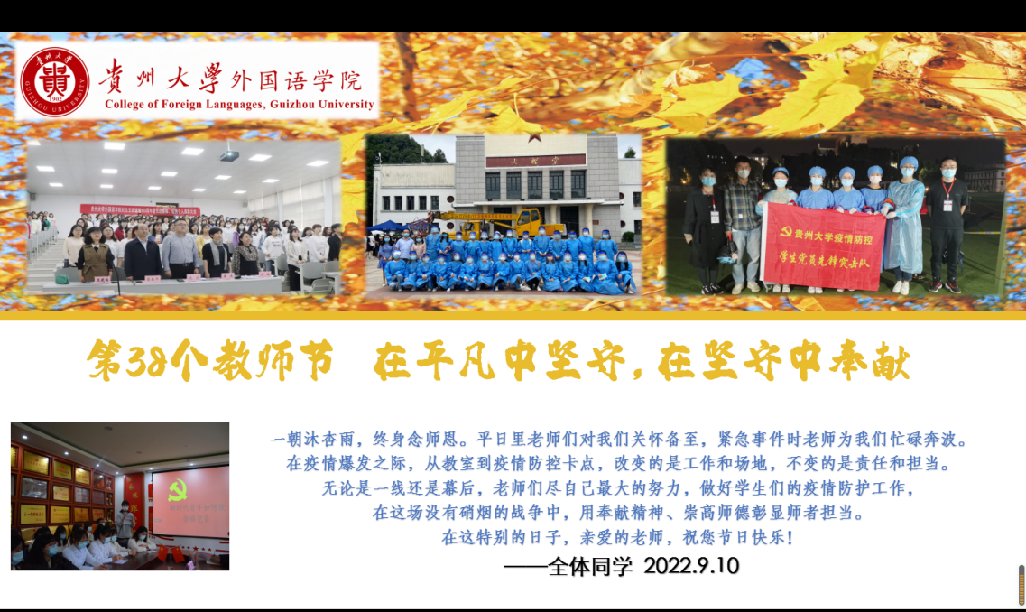 9月10日,是第38个教师节,学院精心组织了英国威廉希尔唯一官网师生联欢会,师生“线上线下”齐聚一堂,互诉思念和祝福。