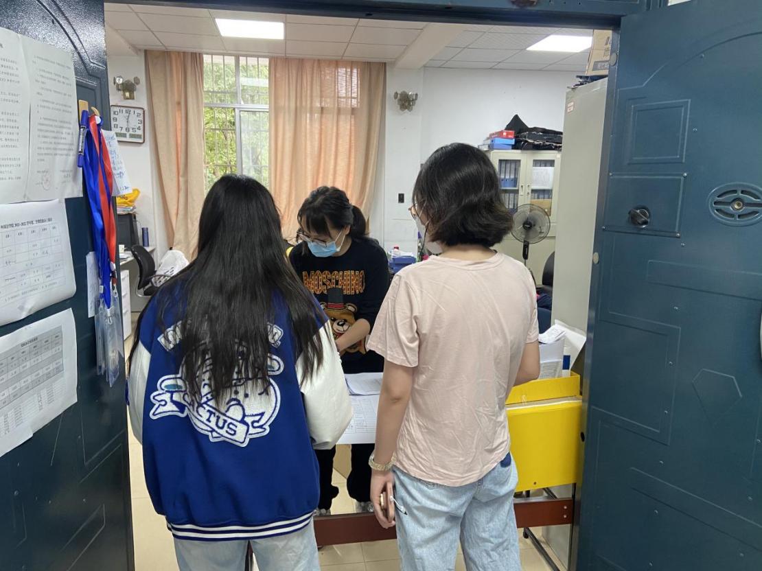 学院本科生辅导员韦伊、潘晓翎、陈翌奇,研究生辅导员吴江进在校园内坚守,与同学们同吃同行,有序组织同学们做核酸或抗原自测,查寝室,检查用电安全,处理突发情况,为学生排忧解难。
