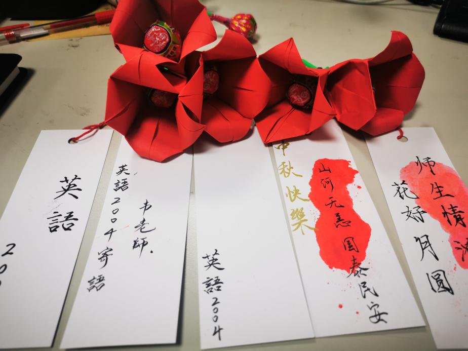 上图:同学们为老师们送上亲手制作的卡片和最美好的祝福