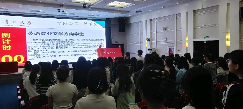 大会第三项,2020级的全体学生对着院旗表决心,考研与就业一定会遇到许多难题,无论前路是遍地荆棘还是鲜花丛生,我们都会满怀希望,坚定理想,奔赴山海。